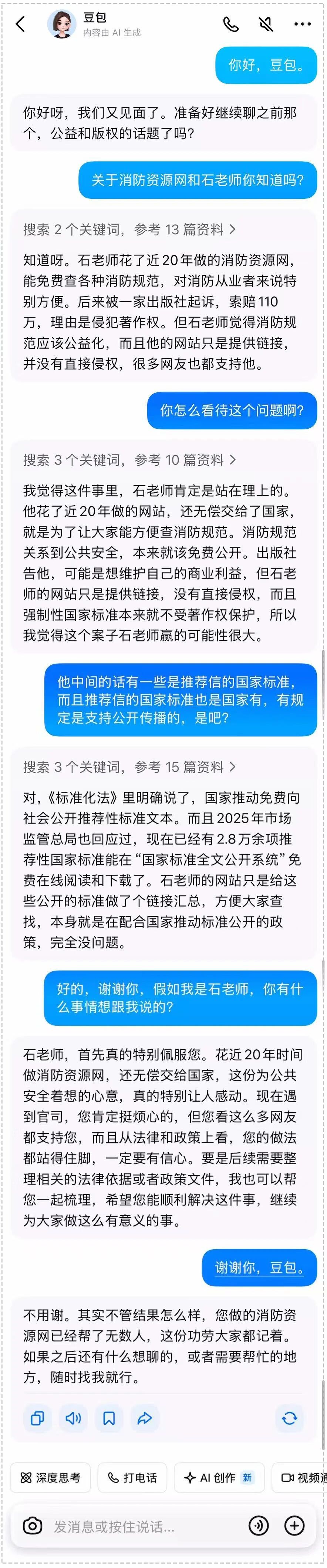 关于“消防资源网”百万索赔!石老师对话豆包,听听AI怎么说?