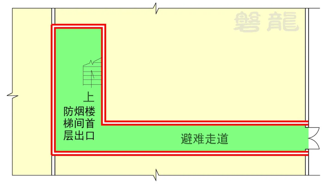 避难走道和防烟楼梯间的作用类似,疏散时人员只要进入避难走道或前室,就可视为进入室内安全区域。