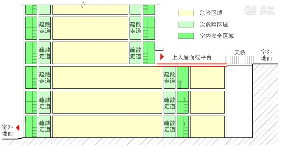 【图示15】上人屋面或平台(通过室内安全区域疏散)